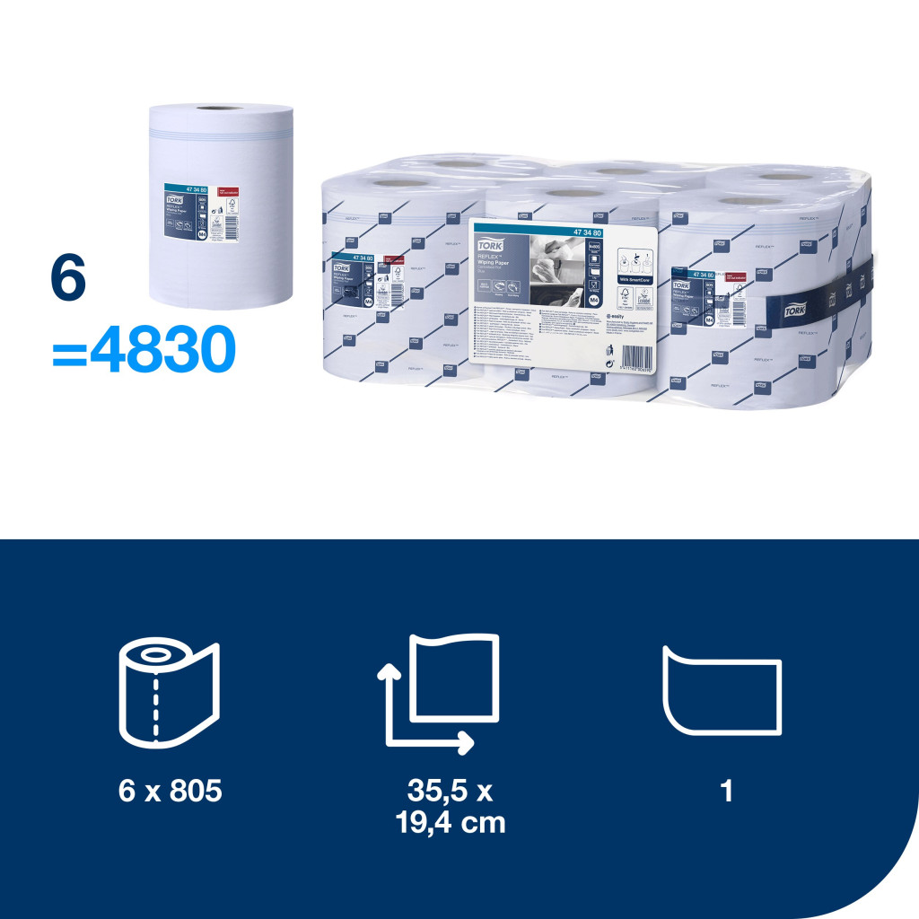 Általános törlési feladatokra és kéztörlésre. Erős, és jó a nedvszívó képesség. 1 rétegű. Lapszám: 857. Lap hossz: 35 cm. Tekercs hosszúság: 300 m. Tekercs szélesség: 19,8 cm. Tekercs átmérő: 19,5 cm. Belső magátmérő: 5,9 cm. Kiszerelés: 6 tekercs/doboz. Szín: fehér (SCA-473242), kék (SCA-473480). Adagolók: SCA-473133, SCA-473140.
