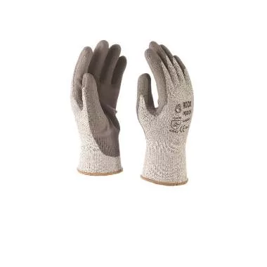 Poliuretánba félig mártott vágásbiztos kesztyű. A munkavédelmi kesztyű szürke színű vágásbiztos szálból és lycra-ból készült. A tenyér része poliuretánba mártott. Ez az anyag kitűnő szigetelő képességéről ismert. A kesztyű kopás és dörzsölésálló, rugalmas. A védőkesztyű megfelel az EN420 és EN388 számú szabványnak.