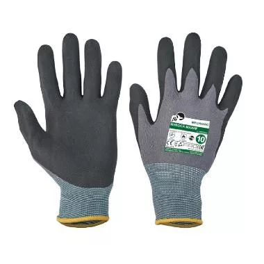 Védőkesztyű, nylon/lycra dzsörzé, mikroporózus nitril mártással. Kiváló folyadékállóság, jól tapad minden helyzetben: száraz, vizes és olajos környezetben is.